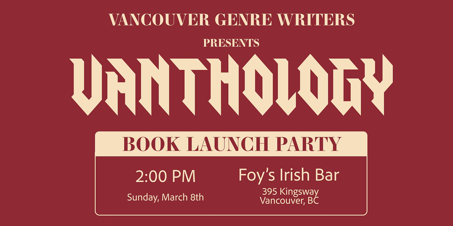 If you’re not able to attend the launch party, Vanthology paperbacks are only $14.99, and the proceeds help fund my group, The Vancouver Genre Writers, in our efforts to create community for local authors, run workshops, and attend conferences and book events.