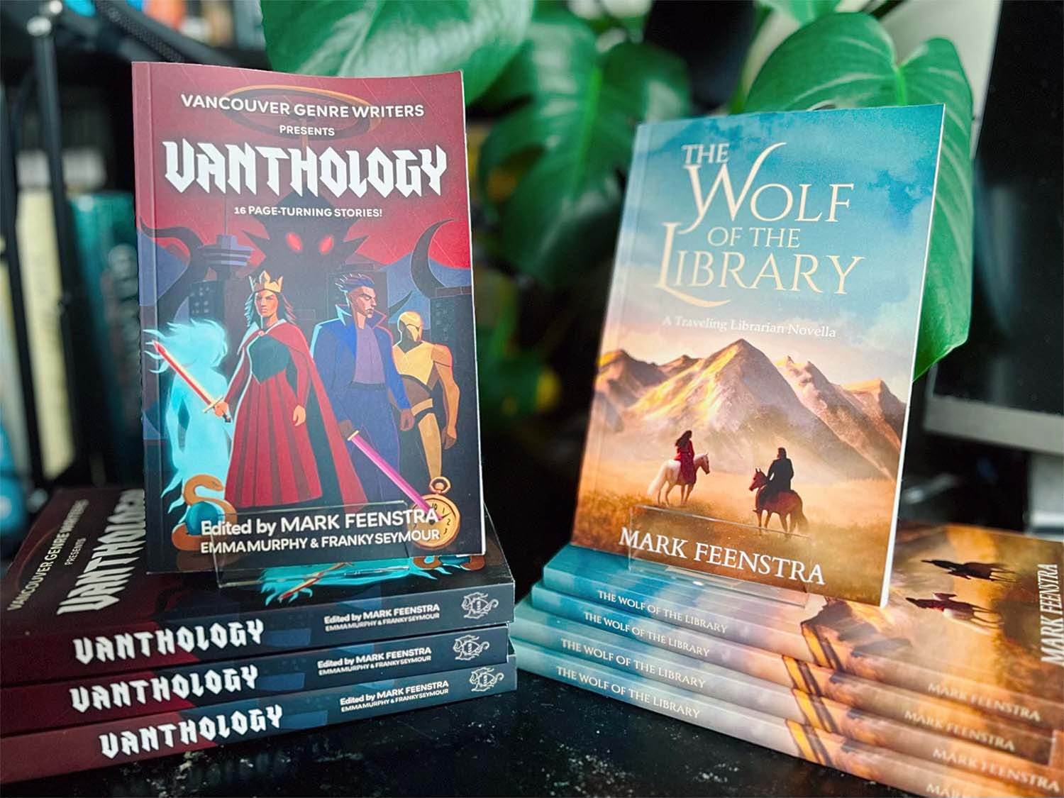Several of the participating authors will be in attendance, and we’ll be selling copies of Vanthology alongside titles from local authors. Like my book, The Wolf of the Library. If you’d like a signed copy of Wolf, this is your chance!
